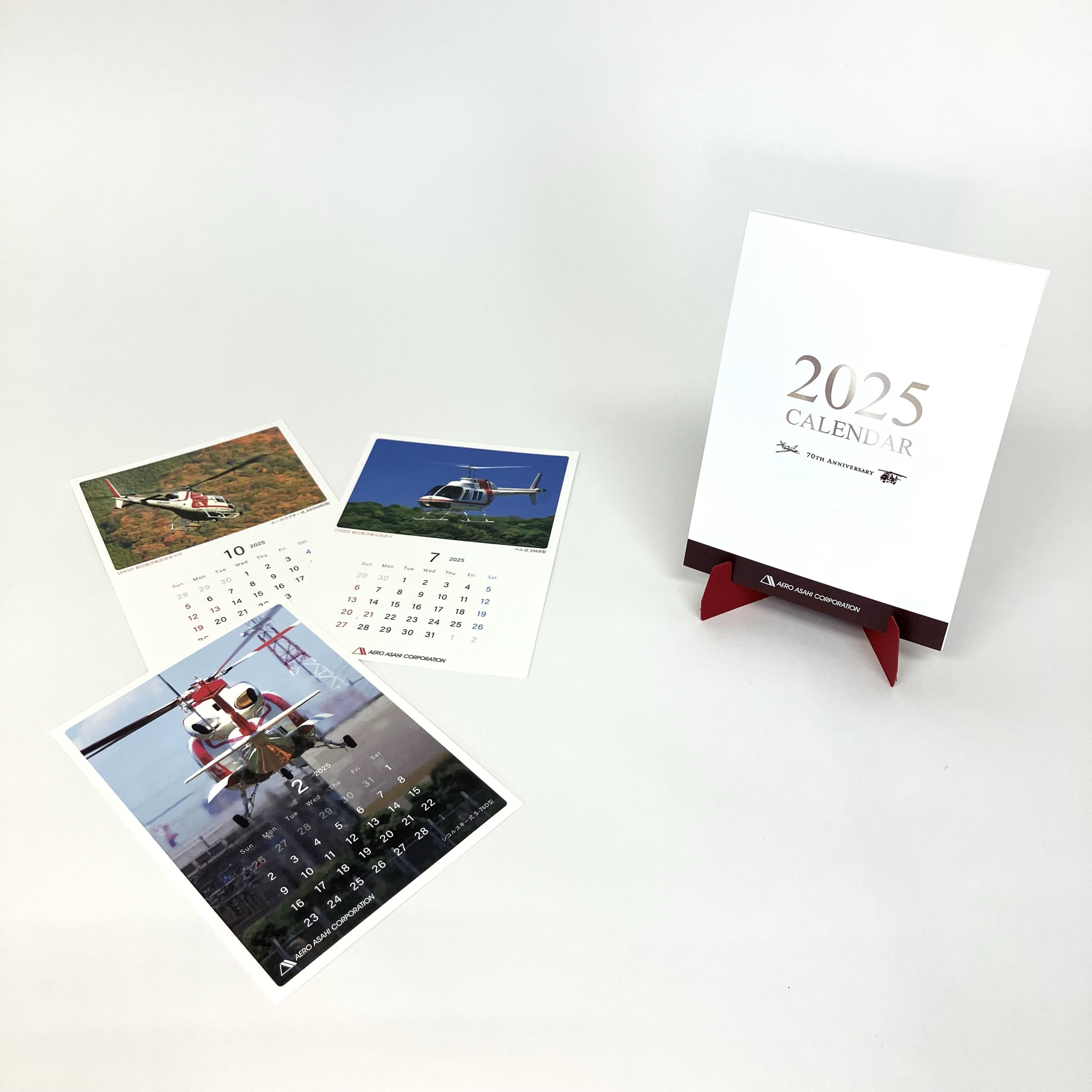 2025年は、エアロトヨタ様が創業70周年を迎えられる節目の年で、このカレンダーは周年記念のノベルティにもなるため、末尾のページにはレトロな風合いが魅力の歴代運航機の写真を掲載しています。